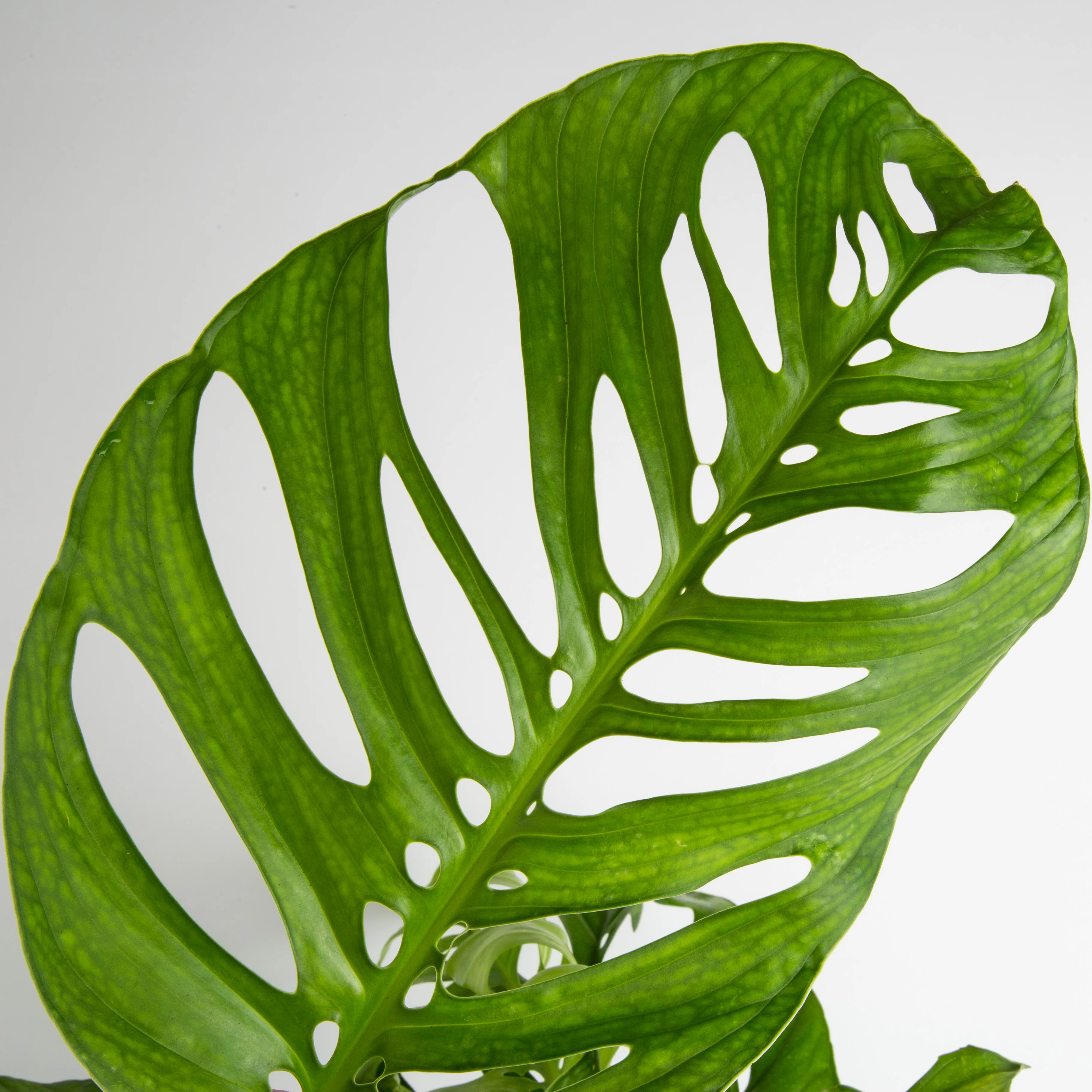 Monstera Esqueleto is a large tropical aroid (plant in the arum family, and relative of Philodendron and Pothos) that sports huge fenestrated leaves. Its leaves are similar to that of Monstera adansonii, but we’re growing it at a size you can enjoy now so you don’t have to wait. There seems to be some mystery around the origin of this plant, with the International Aroid Society suggesting it’s an unidentified species and others calling it Monstera epipremnoides. No matter what you call it, Monstera Esqueleto is one of the boldest and most exotic houseplants you can enjoy. For a dramatic look, grow it with Baltic Blue Pothos (Epipremnum pinnatum Baltic Blue) and Monstera Peru for a stunning mix of textures and colors.